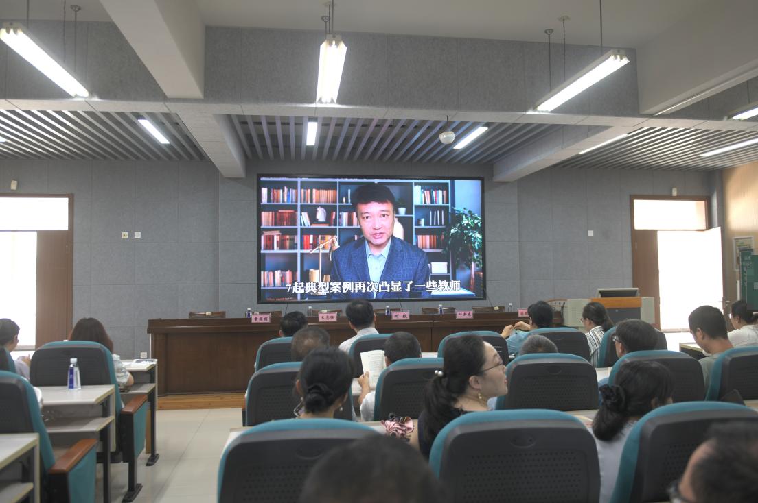 首先開展師德師風警示教育。全體教職員工觀看《教育部通報7起典型案例,師德違規(guī)零容忍》視頻短片。該片通過公開曝光違規(guī)獲取津貼、學術不端、拍攝不雅視頻等多起違反教師職業(yè)規(guī)范的典型案例,警示教師恪守職業(yè)道德。何毅書記結合警示教育案例,傳達了習近平總書記致信全國優(yōu)秀教師代表重要指示精神和全國優(yōu)秀教師代表座談會精神、學校教師節(jié)座談會精神。會議強調,教師隊伍建設是建設教育強國最重要的基礎工作,各位老師要大力弘揚教育家精神,牢記為黨育人、為國育才的初心使命;要修身正己,立德樹人,涵養(yǎng)大格局;要嚴謹治學,錘煉能力,做好大學問;要敬業(yè)擔當,開拓創(chuàng)新,展現(xiàn)大作為。