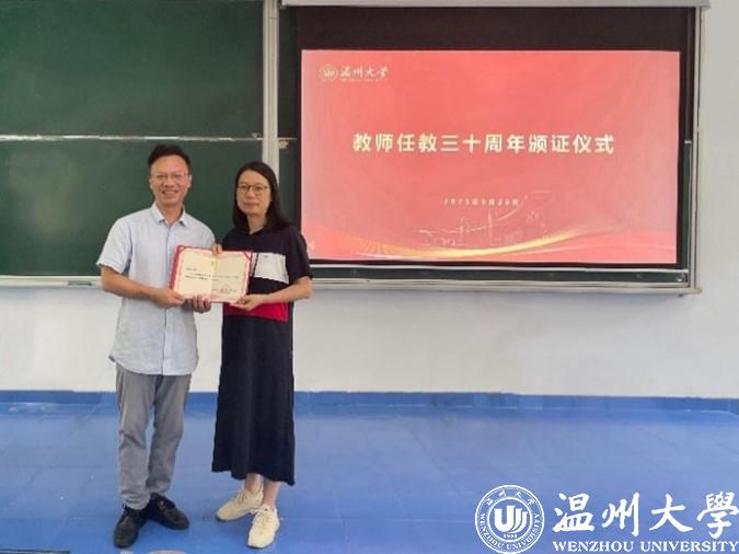 會上,全力書記傳達了習近平總書記《致全國優秀教師代表的信》的文件精神,并引導全院教職工以人民教育家為榜樣,始終牢記為黨育人、為國育才的初心使命,主動擔當起立德樹人的光榮使命,把培育社會主義核心價值觀貫穿教書育人的全過程。接著,全力書記向周艷副教授頒發了“教師任教三十周年”榮譽證書。