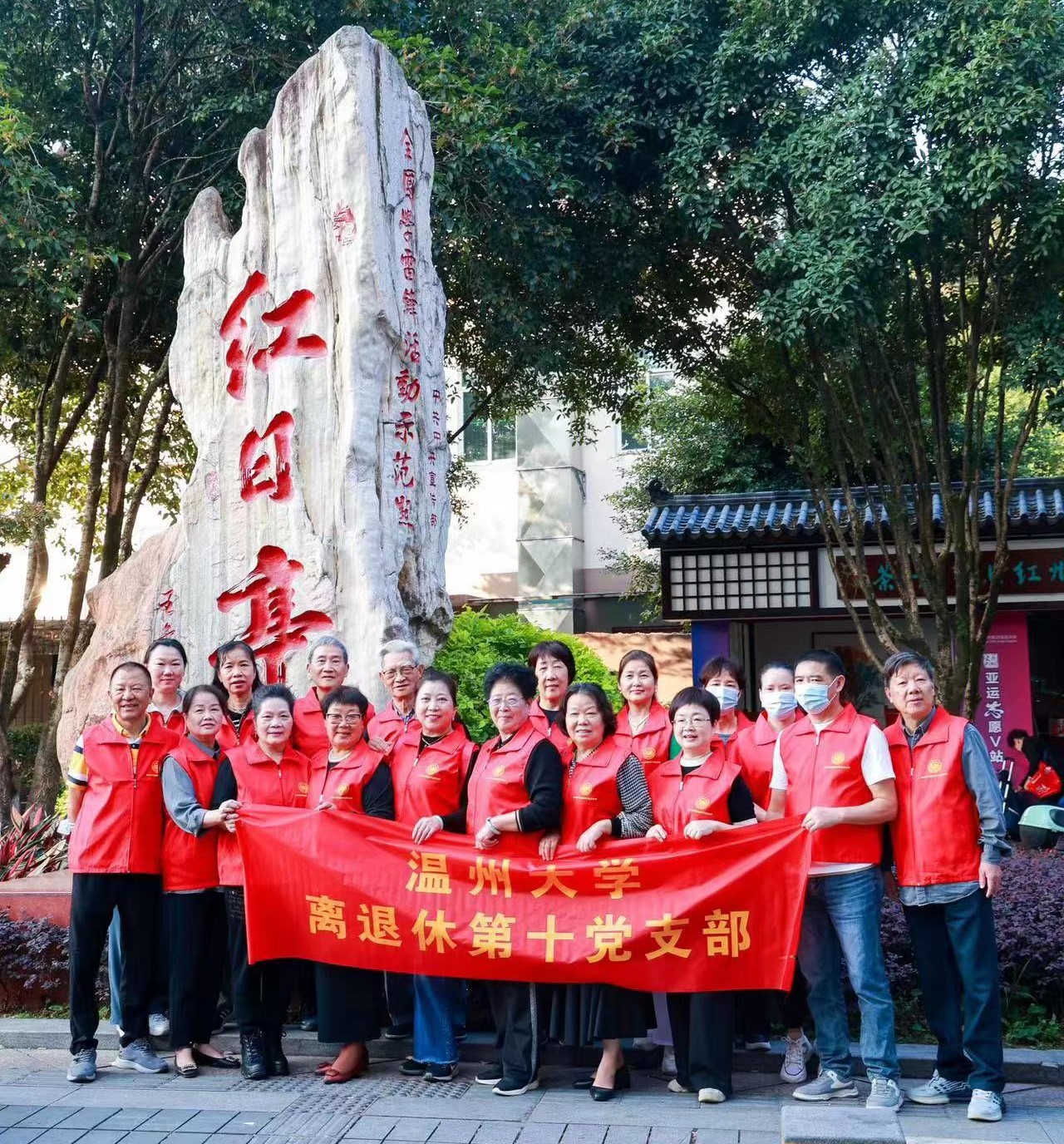 紅日亭,溫州慈善地標。為深入開展學習貫徹習近平新時代中國特色社會主義思想主題教育,更加深刻感悟習近平新時代中國特色社會主義思想的真理力量和實踐偉力,同時為弘揚向上向善的社會風氣,充分發揮老黨員、老干部正能量作用,10月23日重陽節當天,溫州大學離退休第十黨支部聯合溫州工業與能源發展集團有限公司團委,開展“九九重陽節、濃濃敬老情,紅心向黨、善行天下”慈善志愿服務活動。