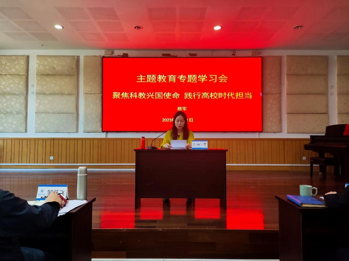 學先進理論,思理論內涵。習近平總書記深刻指出:教育、科技、人才是全面建設社會主義現代化國家的基礎性、戰略性支撐。必須堅持科技是第一生產力、人才是第一資源、創新是第一動力,深入實施科教興國戰略、人才強國戰略、創新驅動發展戰略。在專題學習會上,音樂學院副院長蔡軍以黨課形式,領學《聚焦科教興國使命踐行高校時代擔當》的報告。在領學中,蔡軍副院長說:教師是教育工作的中堅力量,我們要執著于教書育人,有熱愛教育的定力和淡泊名利的堅守,在新時代背景之下,我們要把師德師風擺在首要的位置,本著“捧著一顆心來,不帶本根草去”的精神,傳承好我們的教書育人美德。同時也要有教師大局觀,將自己的教書育人建立在國家建設需要中,遵循人才成長規律和科研規律,為祖國培養德智體美勞全面發展的社會主義新人。