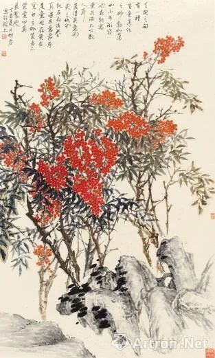 《西湖山果》作品表現了杭州特色的南天竹,在經過嚴冬寒雪之后的春天,展現出勃勃生機、色彩斑斕的美麗景象。源于靈峰探梅途中所見產生的靈感,用筆生動、造型嚴謹,色彩沉著穩重,構圖穿插在平淡中見變化,筆墨爽勁中蘊溫婉。她傾心于畫作,把對前人的敬仰,對傳統的理解、對生活的感受,通過自己的藝術語言表達出來,用最完美的藝術手法詮釋其對作品賦予的獨特魅力。