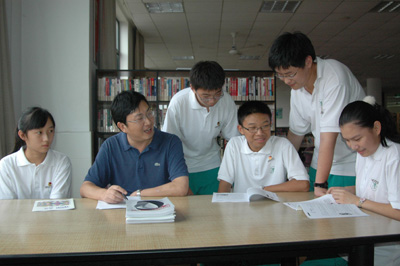 從溫州中學到上海市北中學,這是金老師經歷的第二次調動。在溫州中學的九年執教生活,金老師憑借自己的努力與熱情,獲得了大家的認可,他驕傲地說道:“九年期間,我所負責的溫州中學的學科競賽慢慢地發展到在全省有了一定名氣,得到廣泛的認可,自己也被評上了教授級教師,參加浙江省高考試卷命題,在溫州市的中學數學界可以說是位知名的老師了。”但是,2007年,金老師又做了一個常人難于理解的決定,離開溫州中學來到上海市北中學執教。“我可能會有更大的舞臺。”金老師侃侃而談,“當時常人難于理解,事后看來,我的決定是正確的。在上海,我培養的學生獲得丘成桐中學數學獎金獎,自己也評上特級教師。”